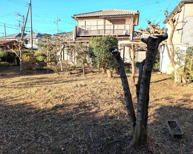 | 詳細 | 空き家で、隣家への越境枝や、空き巣被害が起こり樹木剪定、伐採など手入れをしてすっきりさせました。 空き巣や放火などの心配がなくなり近隣のの方たちも安心したとおっしゃっていました。 |