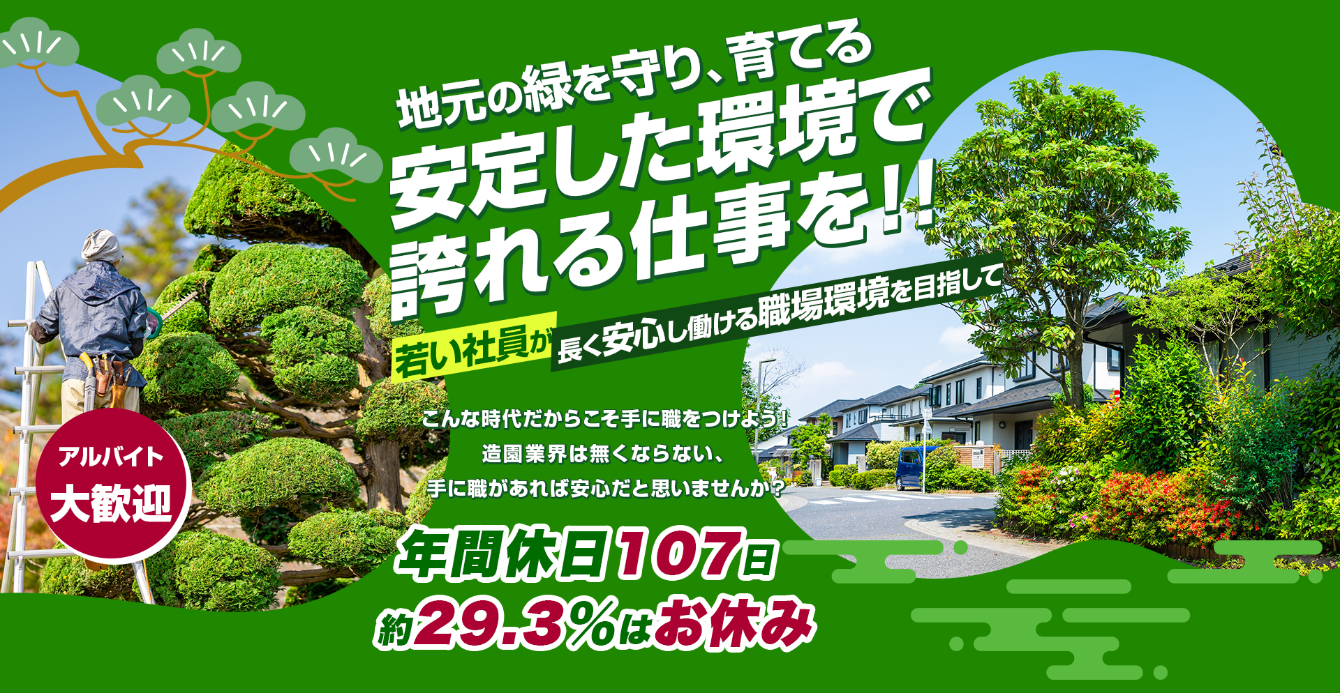 | 募集職種 | 造園工 : 技術者及び見習い 若者歓迎! |